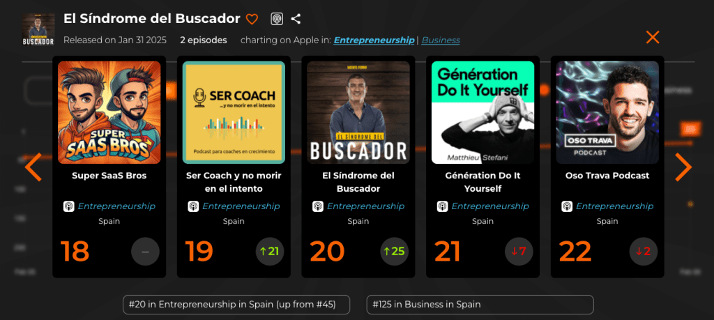 Tras el estreno el día 4 de febrero se situó entre los 20 primeros puestos de la categoría Emprendimiento en Apple Podcasts.